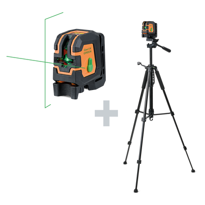 Cross line laser with clearly visible green laser lines. Robust rubberised housing, easy operation - the ideal partner for levelling work indoors.